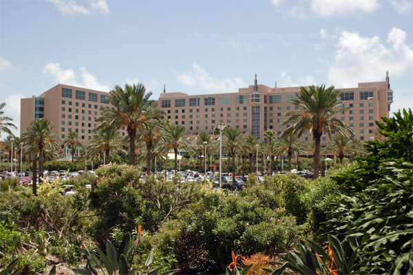The Moody Gardens Hotel, Spa and Convention Center, located on Galveston Island on the Texas Gulf Coast, offers 428 guestrooms and more than 100,000 square feet of meeting and convention space. The entire complex is nestled among lush tropical plants and Palm Trees. Since the mid-1980's, the Moody Gardens entertainment complex has grown to include a living rainforest, one of the world's largest aquariums, an IMAX theater, and a family beach resort. Adjacent properties include the Lone Star Flight Museum and the Schlitterbahn Water Park.